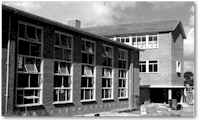 Road to Shirley. [more] Mike Marsh writes: Most of these images are fairly self explanatory. The ones of me depict Speech Day prize givings, both for Senior Handicraft, probably 1953/4 and 1954/5, and held at the Civic Hall in Croydon. The 1954 Speech Day would have been the year before the new school opened in January, 1955. (It is not totally inconceivable though, that the pictures are from the same year, although I think not.) I seem to recall that the Speech Day/Prize Giving was held at the back end of the year, or early in the new year; I go for the former. The closer shot shows Mr. Cracknell sorting out the next prize; the lady giving out the prizes is, I believe, Mrs. Lowe. The fellow with Mr. Lowe is the then Bishop of Croydon, the Right Reverend Cuthbert Bardsley, taken at a speech day. (I took quite a lot of pictures for the school in those days.) The staff picture was taken at the new school in 1955. The picture captioned "West side of the Quadrangle" shows the Geography Room upstairs in the main building, and a door that opened out onto the roof of the single-story block. I remember going out onto the roof to take meteorological readings! [A second floor was added to the Zoology Lab Wing in the early-Sixties - ML.] The pictures of The Mill were also taken during the building period. One has the builder's board hanging on it; I believe it says: "Smith's." The Mill was repainted for the school opening, since it was in a bit of a state beforehand. My guess is that these photographs of the new school were all taken in the summer/autumn towards the end of 1954. The photograph of the school organ was taken during the building phase - I got to play it before I left. I was only at the new JRGS in Shirley for its first two terms until I left in July, 1955. [Other construction images] |