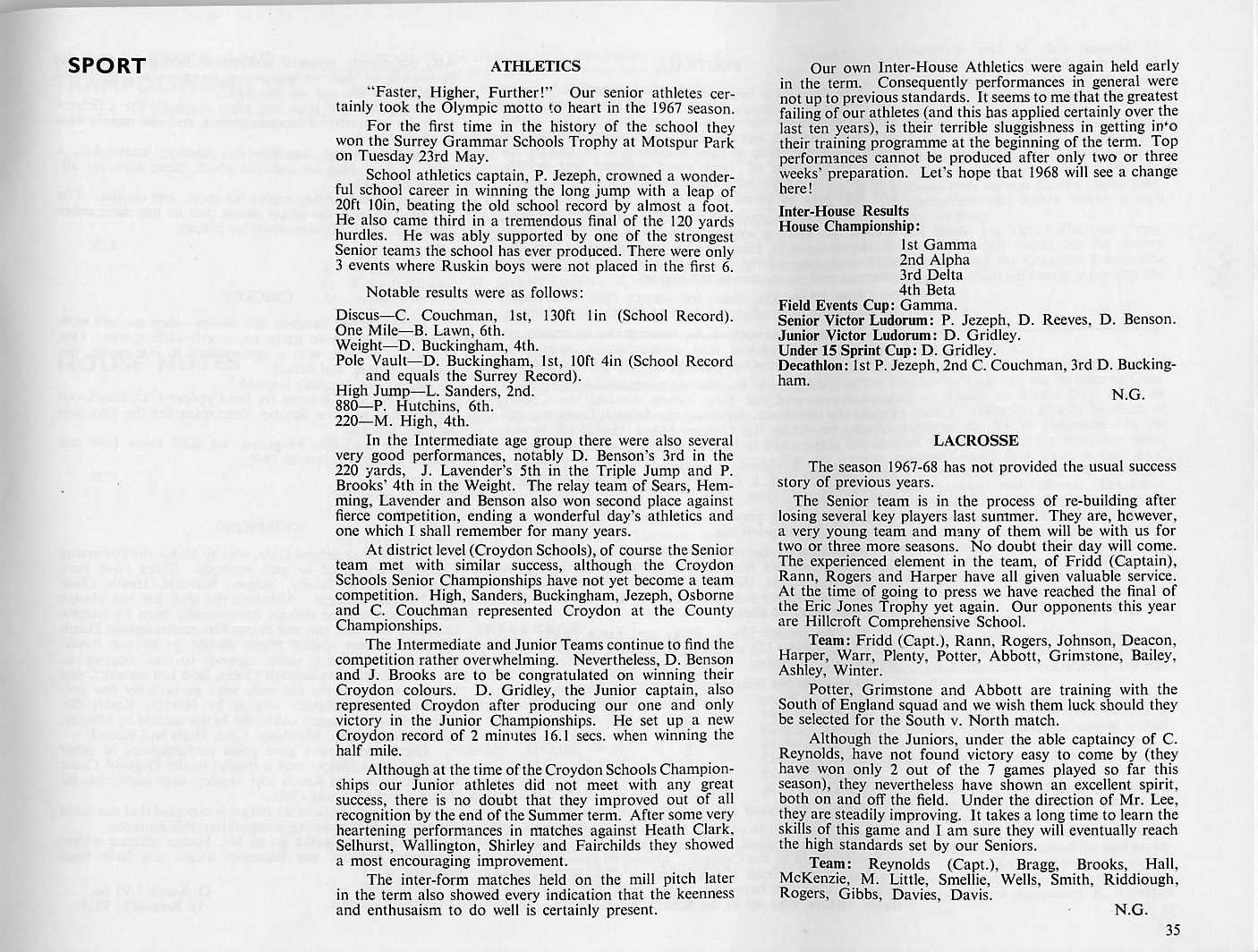interviewees from the last mag; and a typically acerbic comment on the school