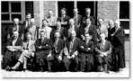 He also provides a name to one of the teachers in the teacher's group photograph outside the new school, shown right. I must say though that the name he suggests does not ring any bells with me at the moment. Click on either image to access a full-size version. As Roger Fuller writes: I think I may be able to add one name to the teacher's picture. Is it Mr. Culcheth, possibly nicknamed "Chico," standing next to Mr. Hancock. I rather fancy he took history and economics.